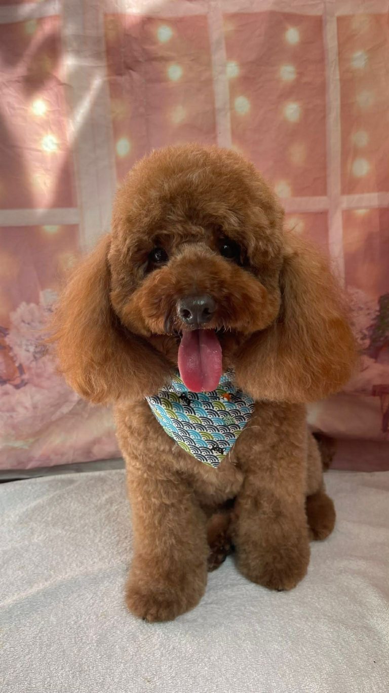 Rambo is a beautiful red pedigree Toy Poodle. He is 4.5 kg in weight and 28cm in height and DNA clear. Rambo has the most adorable and friendly personality. He loves everyone and is a very confident stud. Rambo has produced the most beautiful mahogany red puppies and has produced large litters over his time of being a stud dog. Rambo is a pure bred poodle that is double curl and double furnished he carries red, apricot, black, phantom and can produce puppies with white markings.