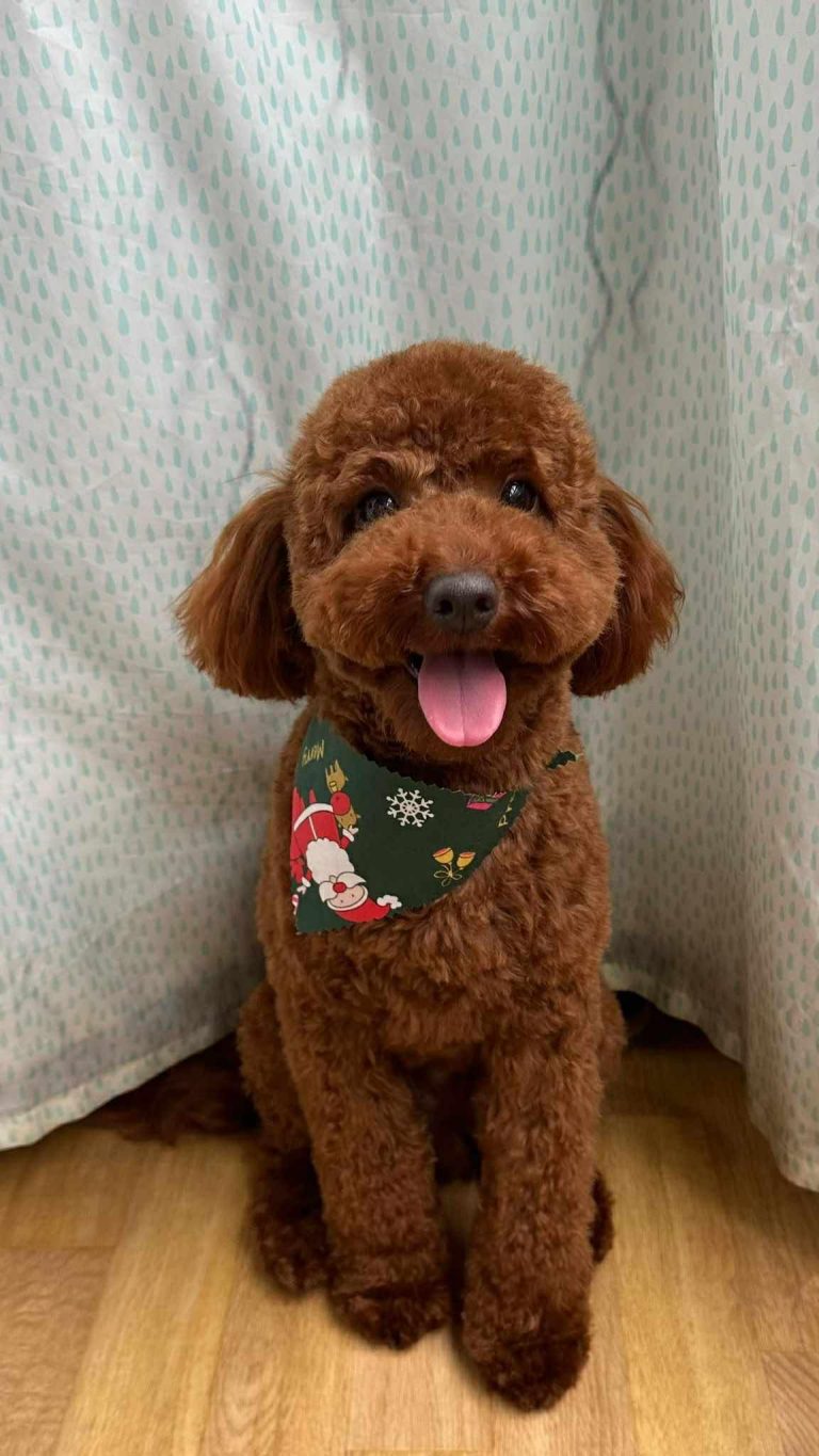 Riley is a mahogany red Toy Poodle who is DNA clear and a proven stud. Riley is 4.5kg in weight and 31cm in height. He has the most playful and sweetest personality. He loves everyone and is great with other dogs. Riley produces beautiful puppies in a range of colours. He Is a pure toy poodle that is double curl and double furnished. He carries red, apricot, black, phantom and produces puppies with white markings.